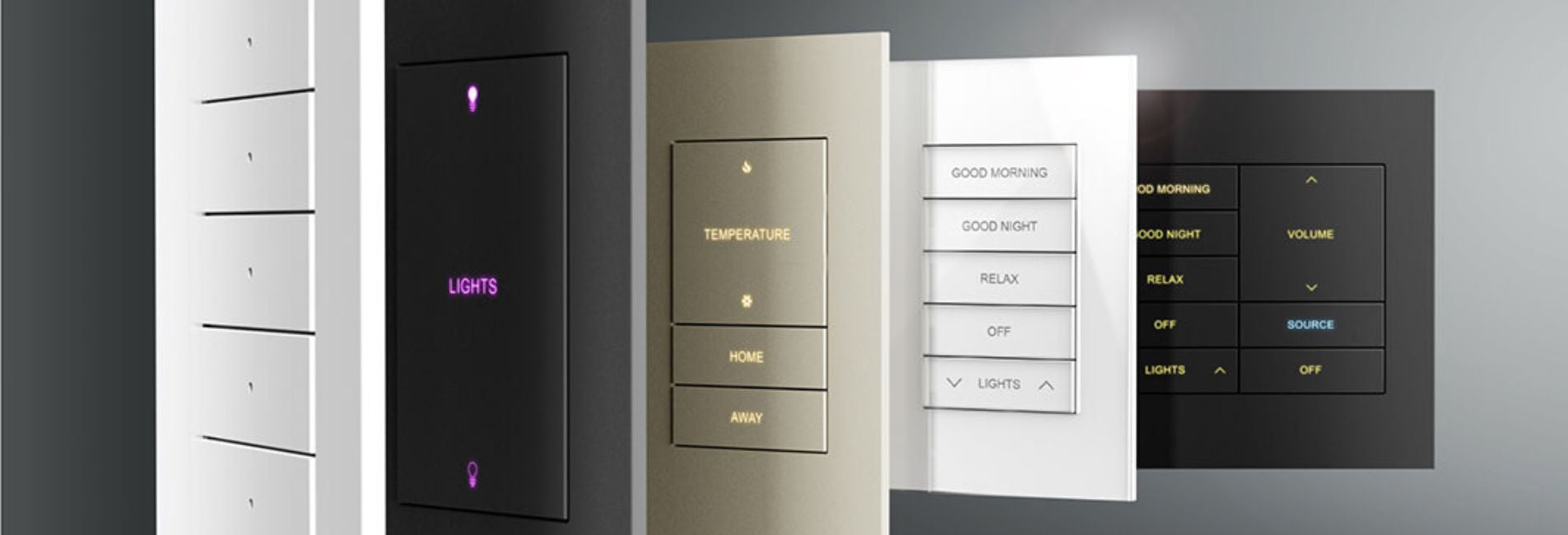 Design panels to fit each space individually, whether you want minimal one-touch scenes in the bedroom or full lighting and audio control in the kitchen.