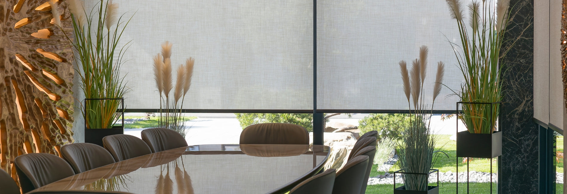 Triathlon roller shades deliver quiet performance with battery or wired power, fascia choices in fabric or metal, and smooth control for windows up to 12 feet.